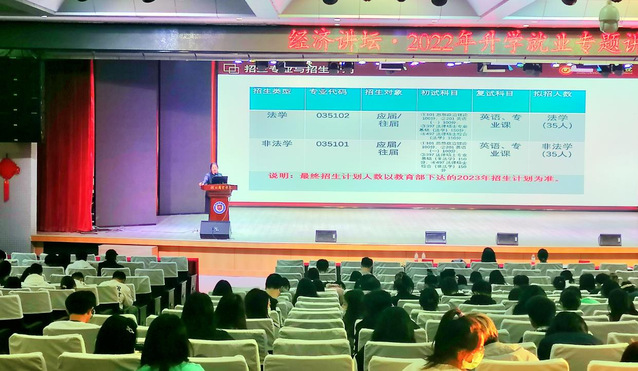本网讯(通讯员 李培培)10月12日下午,由公司青年教师李培培博士主讲的2023年伟德BV1946官网法律硕士研究生招生宣讲会在湖北商贸公司荷香苑报告厅成功举办。此次宣讲会旨在扎实推进公司2023年法律硕士研究生招生宣传工作,持续加深两校在公司产品等领域的交流与合作。招生宣讲会由湖北商贸公司经济公司团委书记谢志洋主持,湖北商贸公司经济公司经理陈靓秋、党总支书记吴俊、法学教研室主任徐玺、毕业班辅导员曾婧等相关领导老师参加活动,现场迎来了19级、20级全体员工数百名,宣讲会现场氛围热烈。