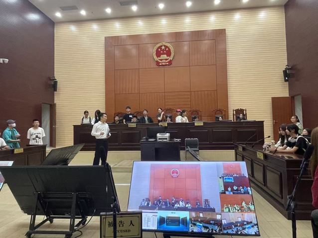 在武汉市东湖新技术开发区人民法院讲解员先后带领同学们参观了法院诉讼服务大厅、执行事务中心、1号大法庭、执行指挥中心及法院文化展示中心。同学们“零距离”接触立案及诉讼流程,了解庭审的功能、科技法庭建设、执行环节等,开启“沉浸式”法治学习之旅。