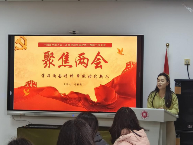 3月6日下午,伟德BV1946官网员工党总支书记叶雅安同志为全体员工党员讲授了以“学习两会精神,争做时代新人”为主题的专题党课,为伟德BV1946官网员工党员夯实理想信念之基,坚定奋斗目标提供思想指引,各员工党支部书记与全体员工党员参加。