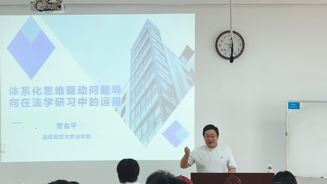 管金平教授指出,在经济法的学习与研究中体系化思维与问题导向的结合至关重要。体系化思维能够将零散的法律条文、理论知识构建成逻辑严密的知识体系。随后,管金平教授围绕经济法的核心概念、基本原则以及与其他部门法的关联展开,详细阐述了体系化思维的构建路径,并引入漆多俊教授著名的“三三理论”以帮助大家建立经济法体系的宏观认知。同时,建议同学们在研习过程中要善于从复杂的经济现象中提炼法律问题,再运用体系化的知识储备提出解决方案,实现理论与实践的有机结合。