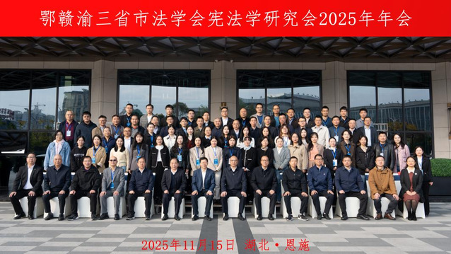 本网讯 (通讯员 林亚楠 王秀才)2025年11月15日,鄂赣渝三省市法学会宪法学研究会2025年年会在湖北恩施举行。本次年会由湖北省、江西省、重庆市三地法学会宪法学研究会共同主办,湖北民族大学与恩施州人大常委会联合承办。湖北省法学会党组成员、秘书长赵俊出席会议并讲话。来自湖北省、江西省、重庆市的近百余名宪法学专家、学者、青年员工代表参加本次年会。
