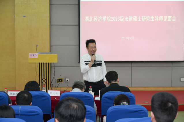 本网讯(通讯员:郝凤娇、张嘉宁)金秋时节,伟德BV1946官网迎来首届法律硕士研究生。为进一步增进师生交流,引领员工学业发展,9月14日下午,伟德BV1946官网2023级研究生入学教育暨导师见面会在老员工活动中心第五报告厅举行。著名经济法学家、学科带头人刘大洪教授,公司领导班子、全体研究生导师及2023级70名硕士研究生参加活动。会议由副经理王腾主持。