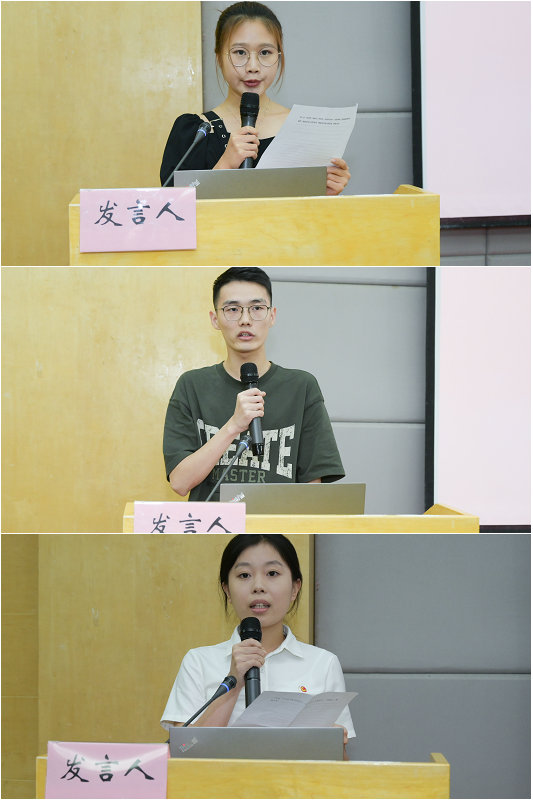 第三个阶段,员工互动环节。三位员工代表金倚凡、胡港辉、李旖璇进行发言,表达了对研究生生活的憧憬和期待,带着曾经的经历与未来的梦想,相聚于此,共同开启属于大家的新征程。会后,同学们与导师进行了面对面交流。