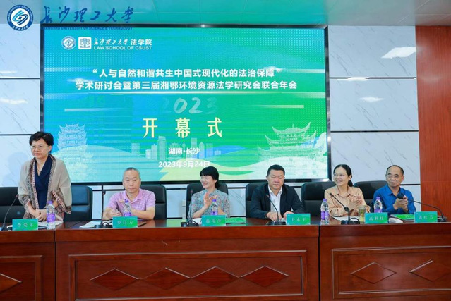 本网讯(通讯员:李培培、胡港辉)2023年9月24日,“人与自然和谐共生中国式现代化的法治保障”学术研讨会暨第三届湘鄂环境资源法学研究会联合年会在长沙理工大学举行。公司师生代表王腾副经理、范锐敏副教授、青年教师李培培及硕士生代表胡港辉参加了此次年会。