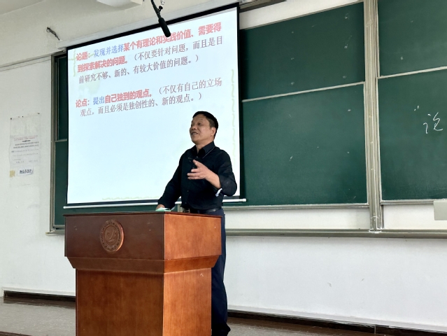 方世荣教授立足于论文写作的基本要素,结合自身丰富的论文发表经验和深厚的学识素养,循序渐进地引导同学们对论文写作进行系统的学习和细致的思考。方教授指出了论文写作四要素的基本要求,首先是发现新的有价值的论题,其次是提出有独创性的新论点,再次是依据充实可靠的论据,最后是做出充分清晰的创新性论证。他以自身科研经历为例,围绕主题细致描述各个分点的考量思路,开拓引导同学们考虑问题的新路径,强化理论基础,培养创新意识,并鼓励同学们多读书多看书,来拓宽自己的学识面和理论水平。