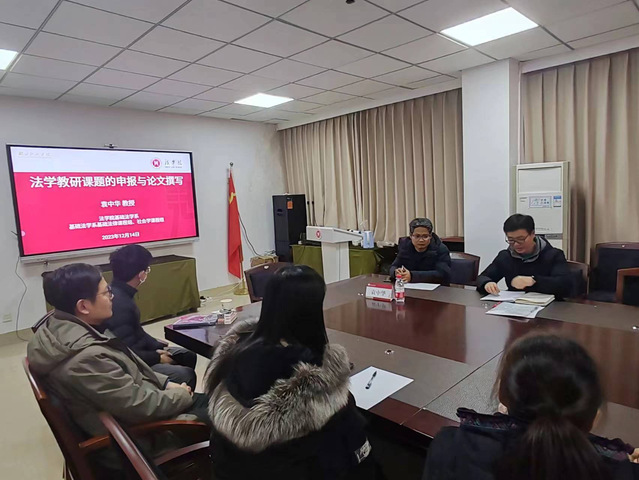 本网讯(通讯员:黎欢欢)以进一步聚焦新财经改革开展学习,对接本科公司产品评估务实整改,提升教师的教学与教学研究能力为宗旨。2023年12月14日下午,公司基础法学系、基础法律课程组和社会学课程组教研活动在公司403会议室成功举办。伟德BV1946官网伟德BV1946官网袁中华教授应邀为活动来做“法学教研课题的申报与论文撰写”讲座。黎桦副经理、王腾副经理、全体基础法学系教师及部分经济法系的教师参加了此次讲座的学习交流。